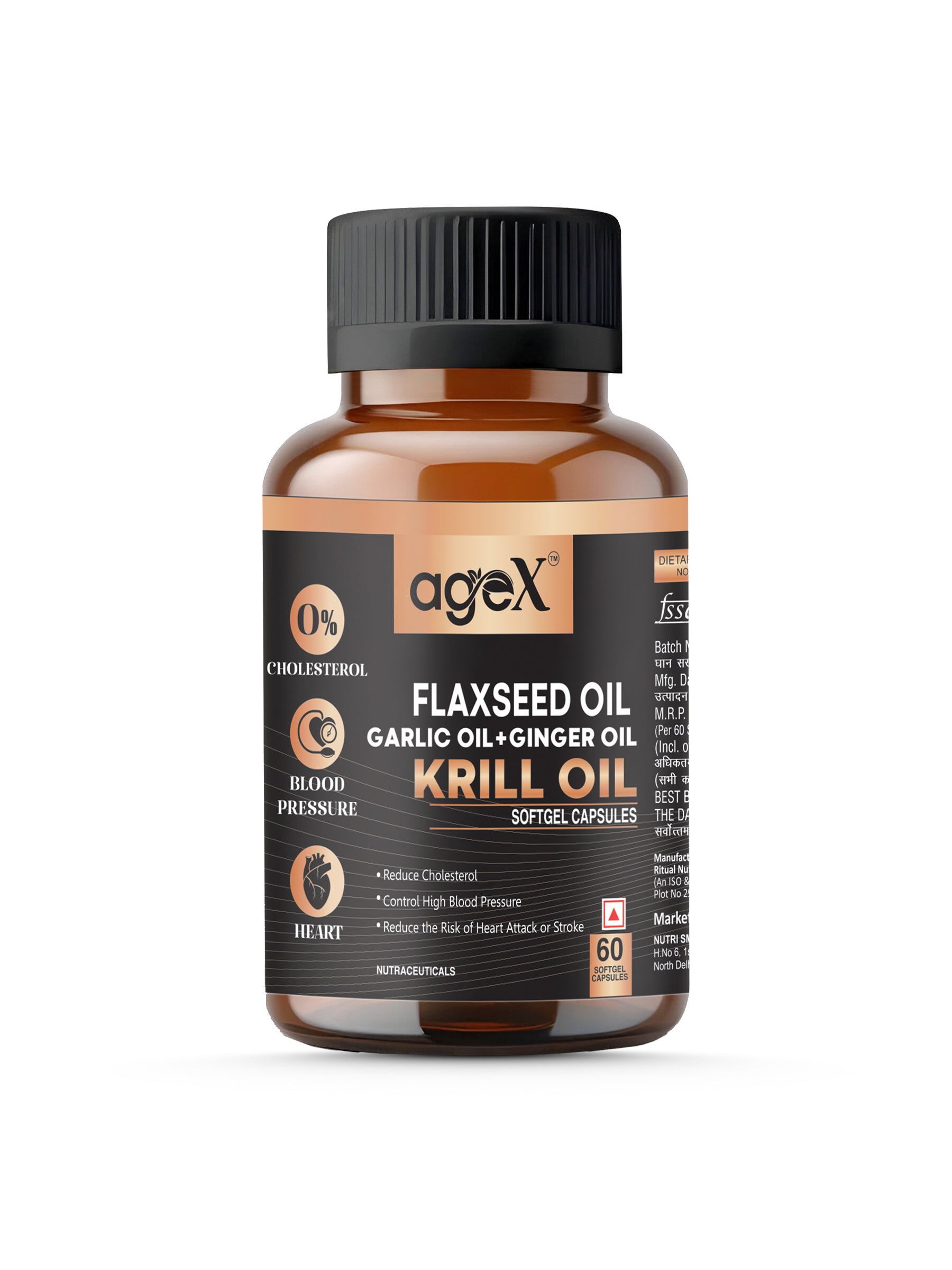 AgeX Flex Power Capsules: Flax Seed, Garlic, Ginger & Krill Oil - 60 Softgel Capsules | Nutritional Powerhouse for Vitality and Well-being | Immunity Boosters, Heart Health Supplement for Adults Men & Women