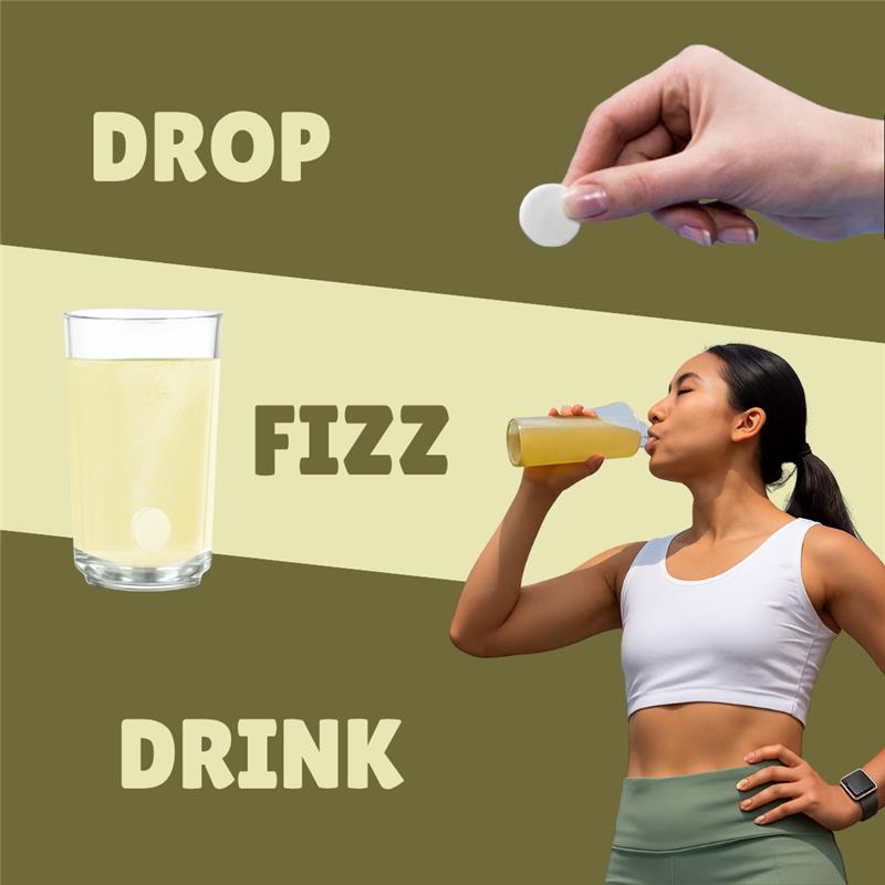 Tasty lemon flavor in an effervescent tablet for rapid absorption.
