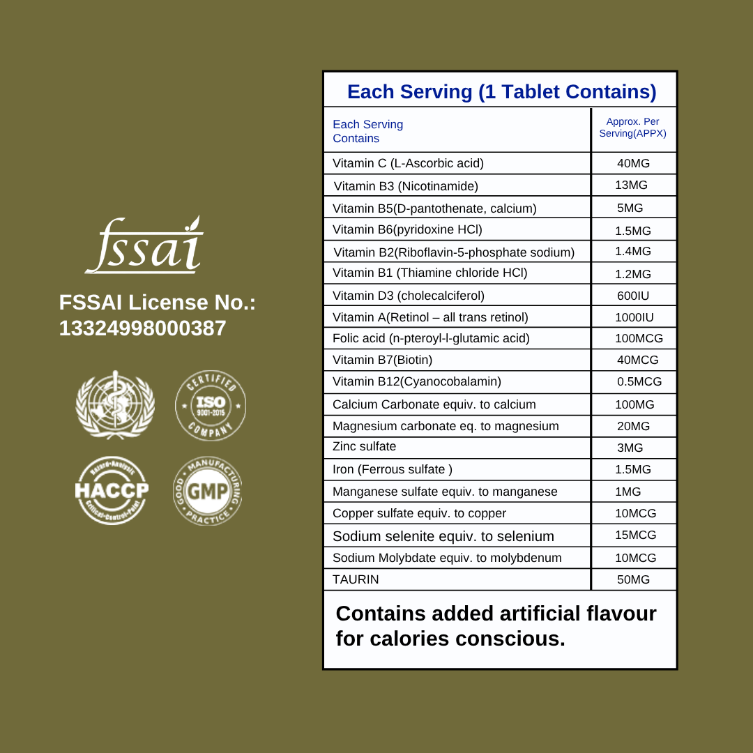 Supplies 21 essential nutrients—including Vitamin C, B-complex, and Zinc—to support overall health and bodily functions. -